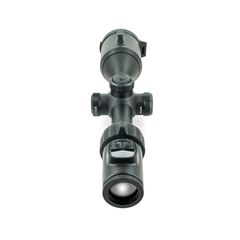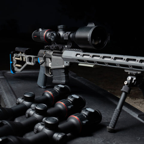 The ACE is built around the idea of combining leading user-requested features in a streamlined optic that balances advanced capability with ease-of-use in the field. Designed to feel like a traditional day optic, the ACE is compatible with bolt action or semi-automatic rifles using standard 30 mm mounts and rings. The combination of an internal USB-C charging battery and a removable 18650 style rechargeable battery allows users to hot-swap batteries in the field to run indefinitely. A 1-3x ocular magnifier provides optical magnification of the 2560×2560 round AMOLED display inside the eyepiece. The Vision+ system pairs this high-resolution display with a ≤15 mK NETD sensor for an incredibly detailed and precise image. The 1,300-yard capable laser rangefinder on the ACE is integrated directly into the 50 mm germanium objective lens. In addition to streamlining the body design and reducing bulk, this allows for improved horizontal alignment of the infrared laser with the viewing system.